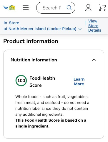Foodhealth.co (formerly Bitewell) sells an API to food retailers that calculates a “FoodHealth Score” for every food item. You can’t access the scores directly—you only see them from one of their participating retailer’s own app.