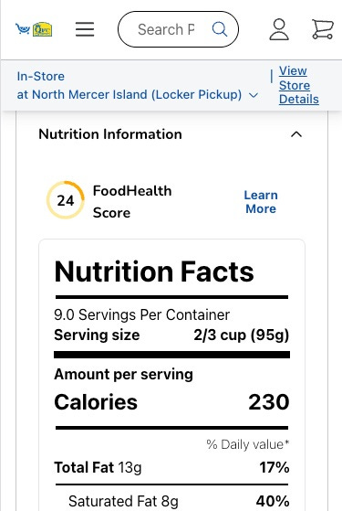You can see it from within the Kroger app, where for example here’s the score for Tillamook Udderly Chocolate Ice Cream at my local grocery store.